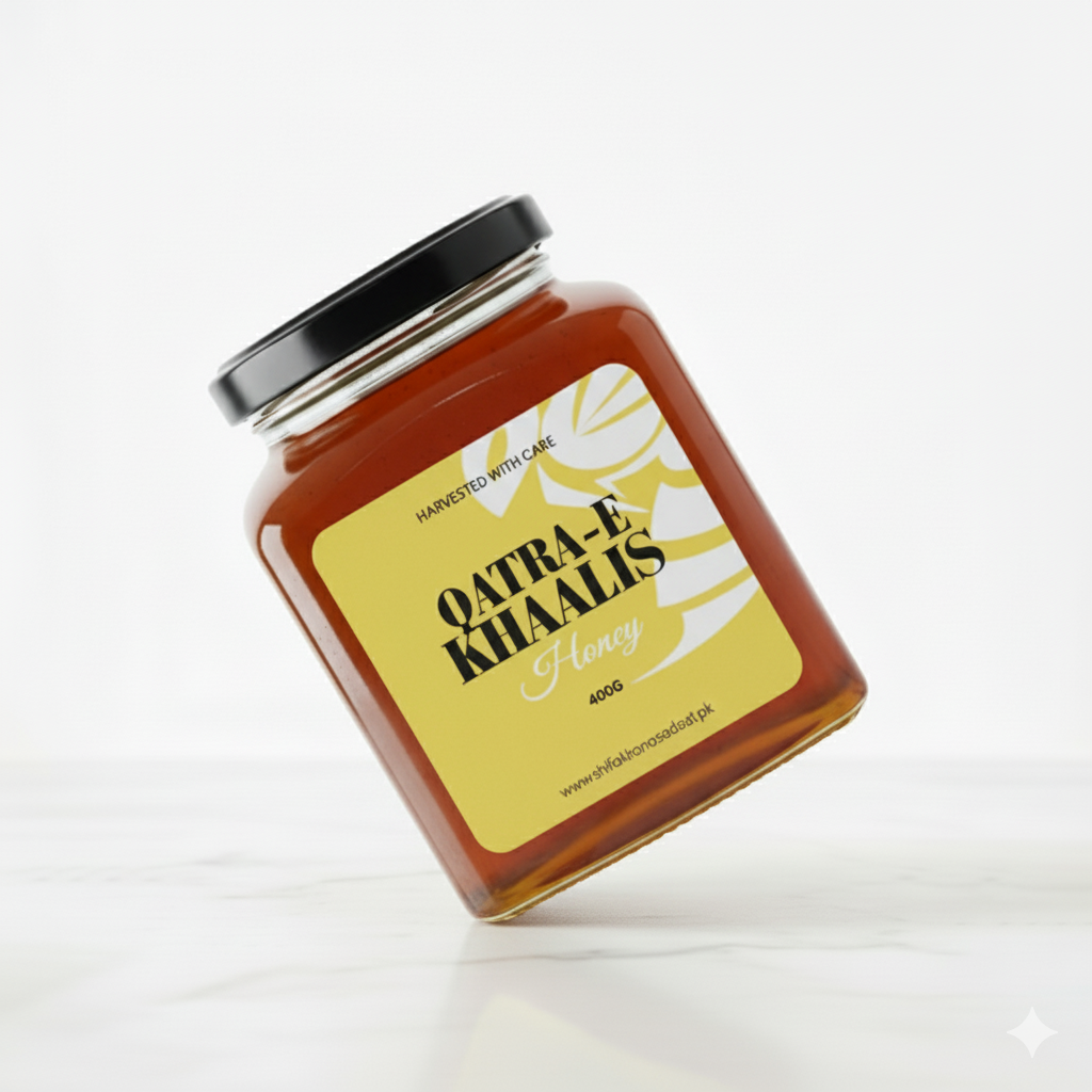 Qatra e Khaalis is pure, unblended honey harvested from free bees, known as Azad Makhi Honey. This rare and natural honey is available only for a few months each year, making it a truly exclusive source of nature’s finest nutrients. It is rich in enzymes, antioxidants, and minerals that help boost immunity, strengthen bones, and support overall wellness.